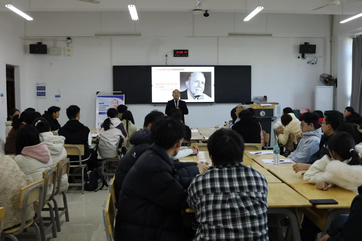 为加强我院学生对当前就业形势的了解,明确就业目标,增强就业技能,进一步提高个人的就业竞争力,并为未来的就业做好准备,我院于2025年12月30日举办职业发展规划讲座。此次讲座特别邀请景旺电子科技(赣州)有限公司人力资源经理孙谋担任主讲人。