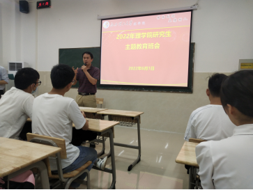 6月1日下午,我院召开2022年研究生主题教育班会,理学院副院长杨火根、团委书记郭晟、研究生秘书朱侠及全体研究生参加了此次会议。