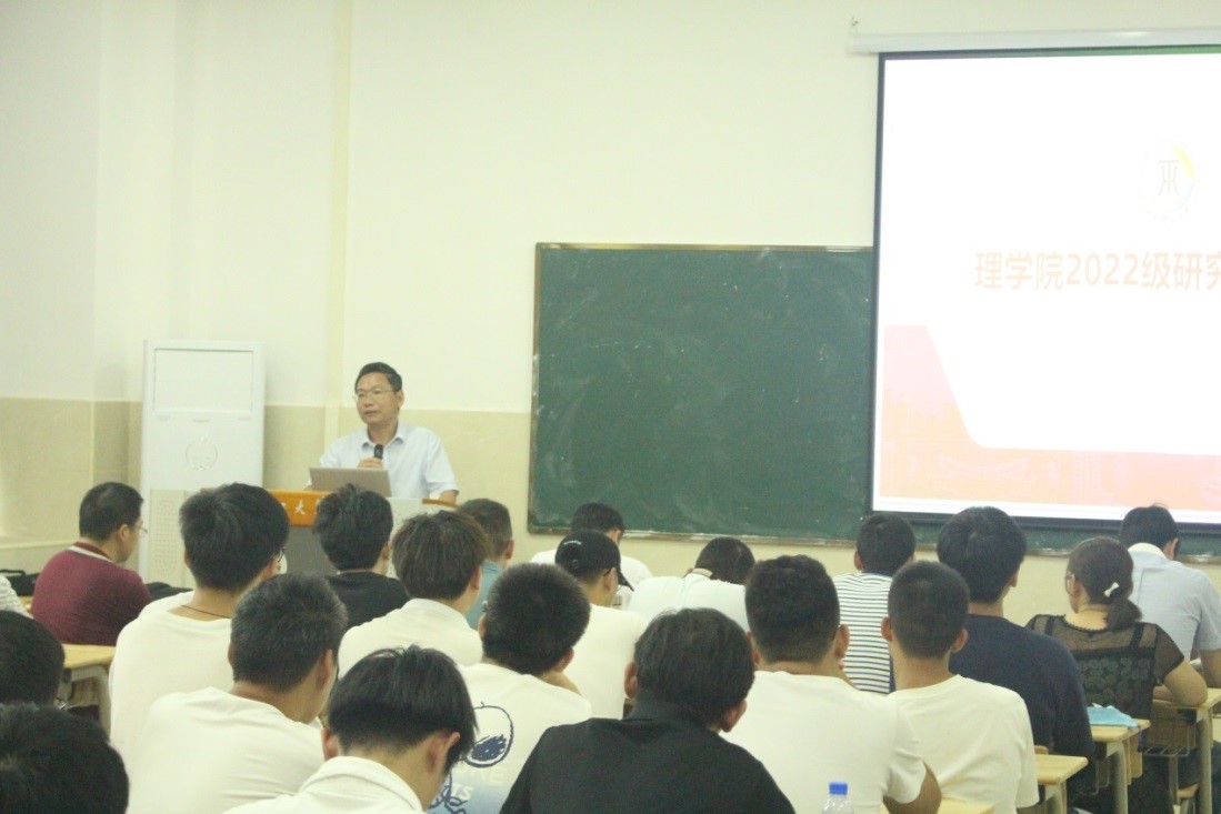 9月6日下午,我院2022级研究生新生入学教育在明理楼103隆重举行。我院院长周石其、党委副书记钟晓辉、副院长杨火根以及研究生导师参加了此次入学教育。会议由理学院副院长杨火根主持。